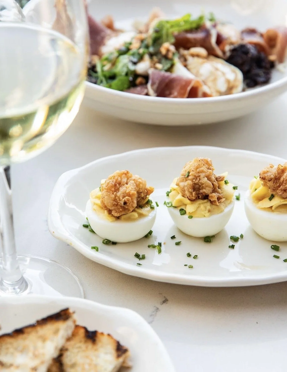 Conveniently right across the street, which makes it dangerously easy to visit. And the deviled eggs topped with crispy fried chicken? Non-negotiable!